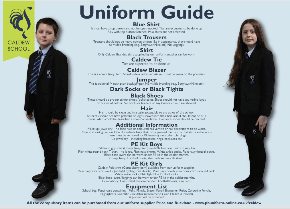Please note compulsory items can be purchased from our uniform supplier - Price and Buckland www.pbuniform-online.co.uk/caldew